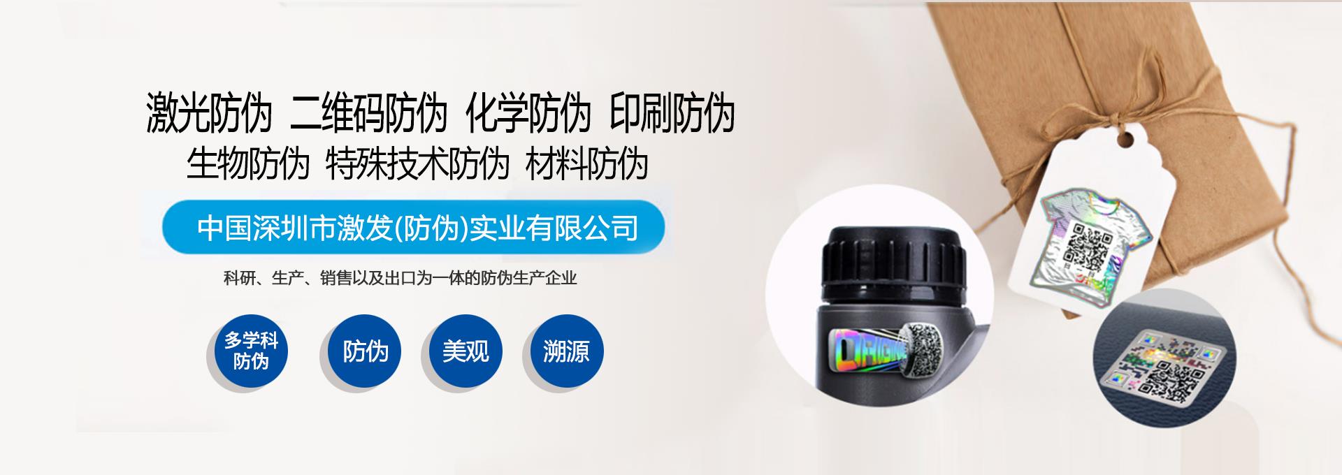中國(guó)深圳市激發(fā)(防偽)實(shí)業(yè)有限公司創(chuàng)立于1993年,為“深圳防偽”港資企業(yè)第一家防偽標(biāo)簽廠。公司業(yè)務(wù):激光防偽標(biāo)簽、全息防偽標(biāo)簽、激光全息防偽、鐳射防偽標(biāo)簽、防偽鐳射標(biāo)、電碼防偽標(biāo)、防偽二維碼、吊牌防偽標(biāo)簽、激光加印刷、二維碼防偽標(biāo)簽及物流碼等防偽標(biāo)貼印制。為科研、生產(chǎn)、銷售以及出口為一體的防偽生產(chǎn)企業(yè)。公司秉承互利、共贏的理念,為中國(guó)、東南亞、中東及歐美等國(guó)家地區(qū)企業(yè),提供品牌的防偽標(biāo)貼以及相關(guān)技術(shù)服務(wù)。服務(wù)范圍:廣東廣州、深圳、溫州、北京、上海、四川、福建等地。我們一直追求專業(yè)化發(fā)展道路,始終秉持“質(zhì)量第一,客戶至上,開拓創(chuàng)新求發(fā)展”的運(yùn)營(yíng)方針,通過(guò)持續(xù)不斷改進(jìn),始終掌握高端精密的核心技術(shù),精湛的生產(chǎn)制造工藝和產(chǎn)品質(zhì)量控制,用我們的專業(yè)化服務(wù)幫助客戶創(chuàng)造更高的價(jià)值。我們相信,通過(guò)我們的不斷努力和追求,一定能夠?qū)崿F(xiàn)與客戶的互利共贏!